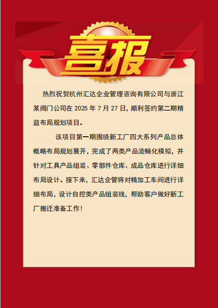 【喜報】匯達企管續約模具工廠二期精益項目